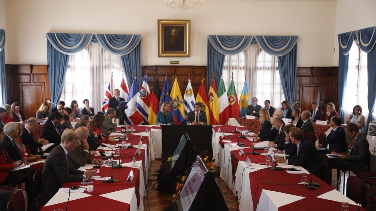 “Hemos conocido esta noticia cuando estábamos reunidos y lo hemos incluido inmediatamente en nuestra declaración”, declaró en una rueda de prensa la jefa de la diplomacia europea, Federica Mogherini, que copresidió la reunión junto al anfitrión, el canciller José Valencia.