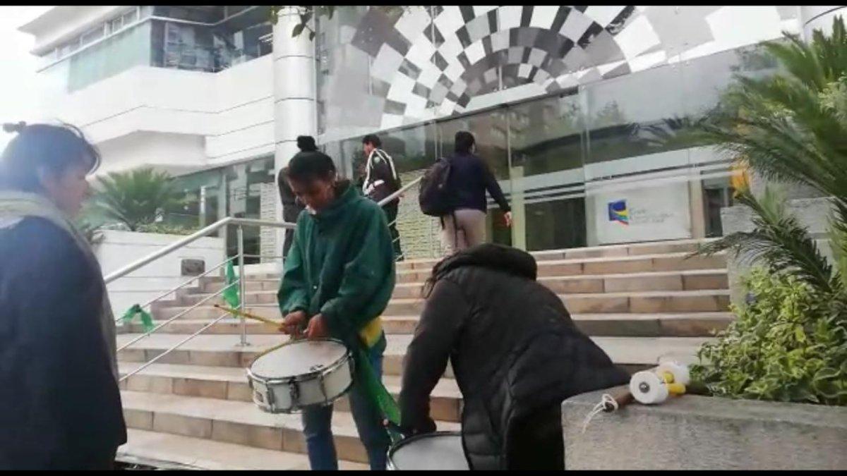 Anudaron los pañuelos verdes, principal insignia del movimiento proaborto, a las escalinatas de la Corte Constitucional en Quito. El pedido de un grupo de mujeres se hizo escuchar la tarde del jueves 14 de noviembre acompañado de tambores.