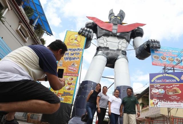 Antonio Martínez, de 50 años, llegó en compañía de varios amigos hasta la 13 y Medardo Ángel Silva, donde se exhibe a Mazinger Infinity, que es el más alto de la ruta, con 15 metros de altura. “Siempre venimos a esta exposición y no quisimos dejar pasar la ocasión, especialmente porque ahora está uno de mis personajes favoritos de mi niñez. Quiero grabar este recuerdo”, dijo, mientras preparaba la cámara de su teléfono celular para posar junto al gigante.