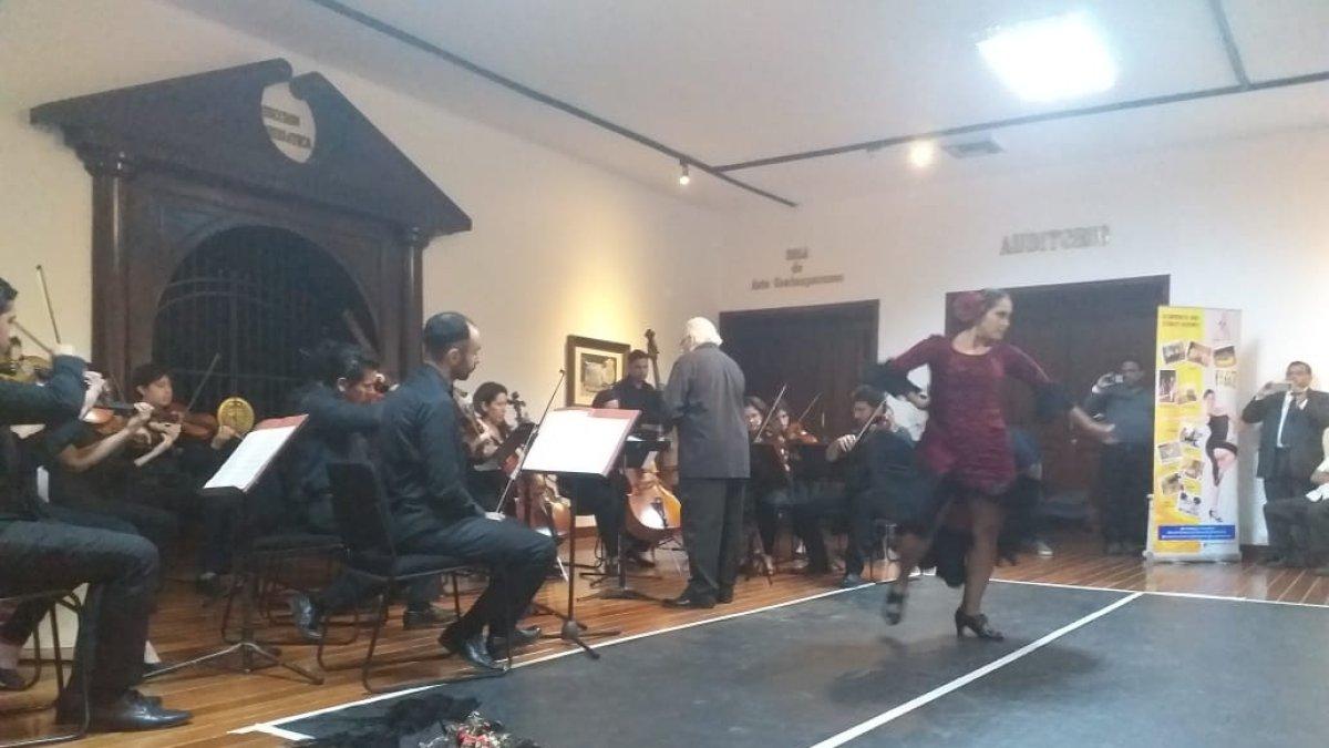 El sonido de las castañuelas y de los violines se conjugaron en un concierto gratuito ofrecido esta noche por la Orquesta de Cámara Antonio Vivaldi, del Museo Municipal de Guayaquil y por la bailarina Scarlett Pazmiño.