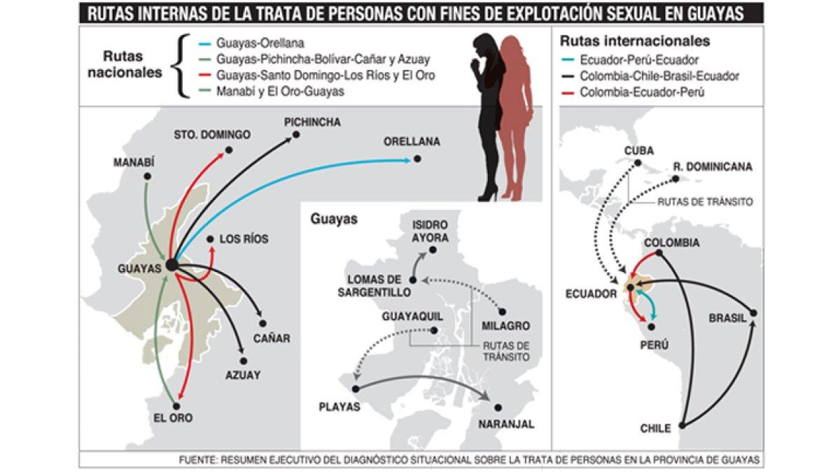 Internacional. La trata internacional afecta tanto a mujeres ecuatorianas como colombianas que son traídas al Ecuador por redes organizadas.