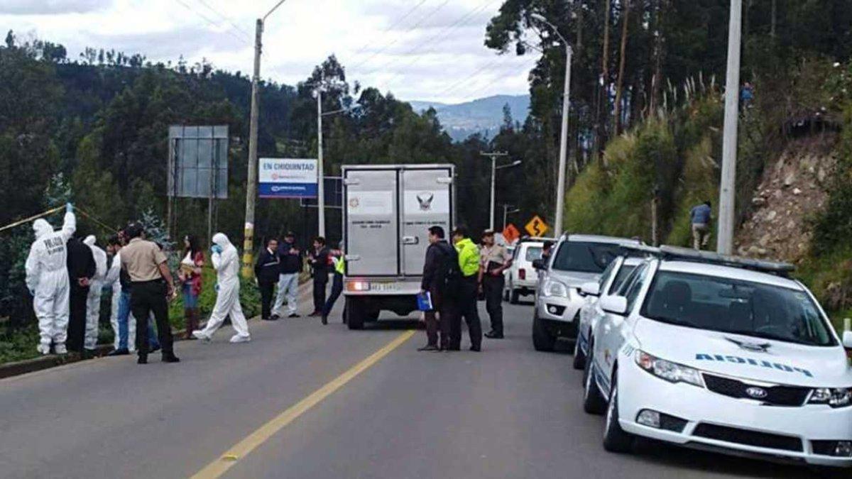 El cadáver estaba envuelto en una sábana color blanco y con manchas de sangre, en la localidad de San Andrés, en la parroquia de Chiquintad, al noreste de Cuenca.