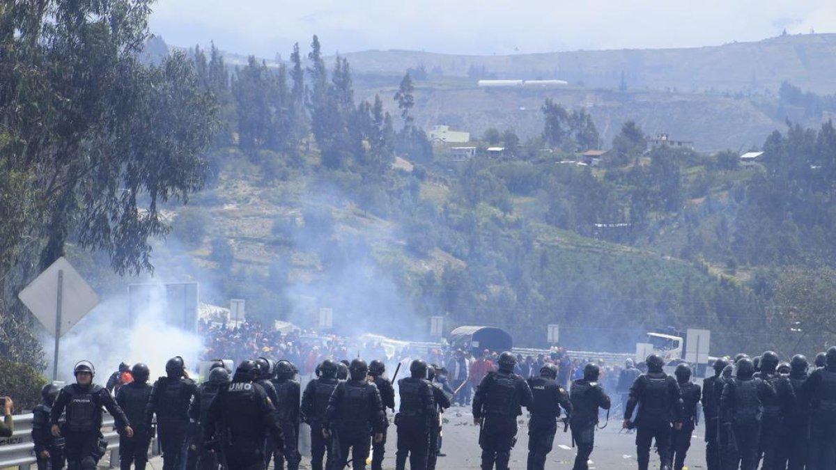 #Urgente | fuerte represión a la gran #MovilizaciónCotopaxi del @Micc_Ec que de forma pacífica desde la madrugada de hoy lunes permanece en la vía E35, responsabilizamos de estos hechos al gobierno nacional. @mariapaularomo@Lenin