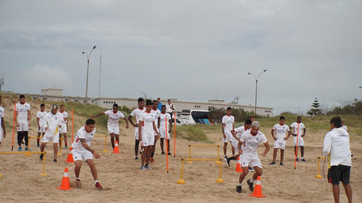 Es el último día sobre la arena, lo advierte el preparador físico del equipo, Rubens Valenzuela. Los canarios llegan a la mitad de los trabajos previo al inicio de la Copa Libertadores y el campeonato nacional poniendo énfasis en las labores generales; la playa les da todas esas facilidades. Trabajan a sus anchas. No hay curiosos, pero sí está EXPRESO.