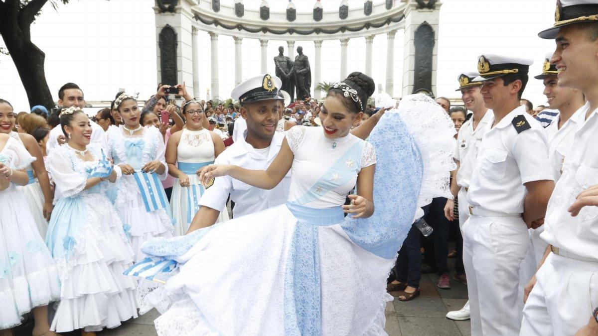 Otros, entre ellos los personajes Juan y Juanita Pueblo, dibujaban sus pasos en las calles de la ciudad al ritmo de la canción ‘Guayaquileño madera de guerrero’, entonada por la banda musical de la Policía Nacional.