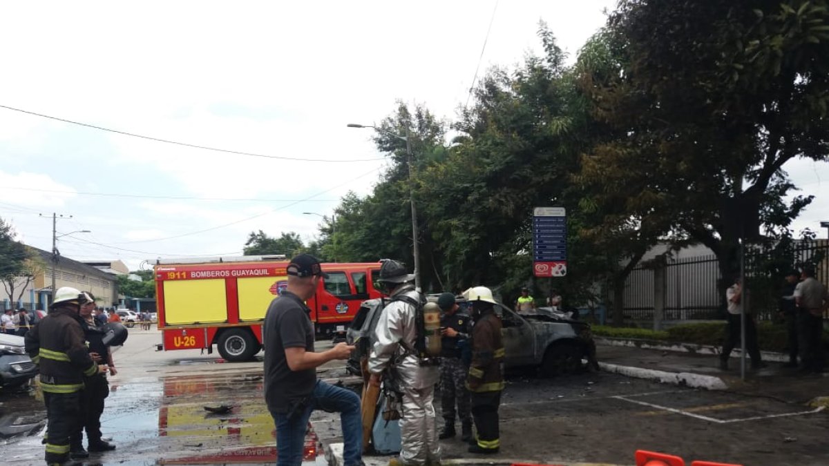 Un incendio vehicular se registró la tarde de este martes en la Universidad de Guayaquil. Las causas del siniestro, ocurrido en los exteriores de la Facultad de Educación Física,