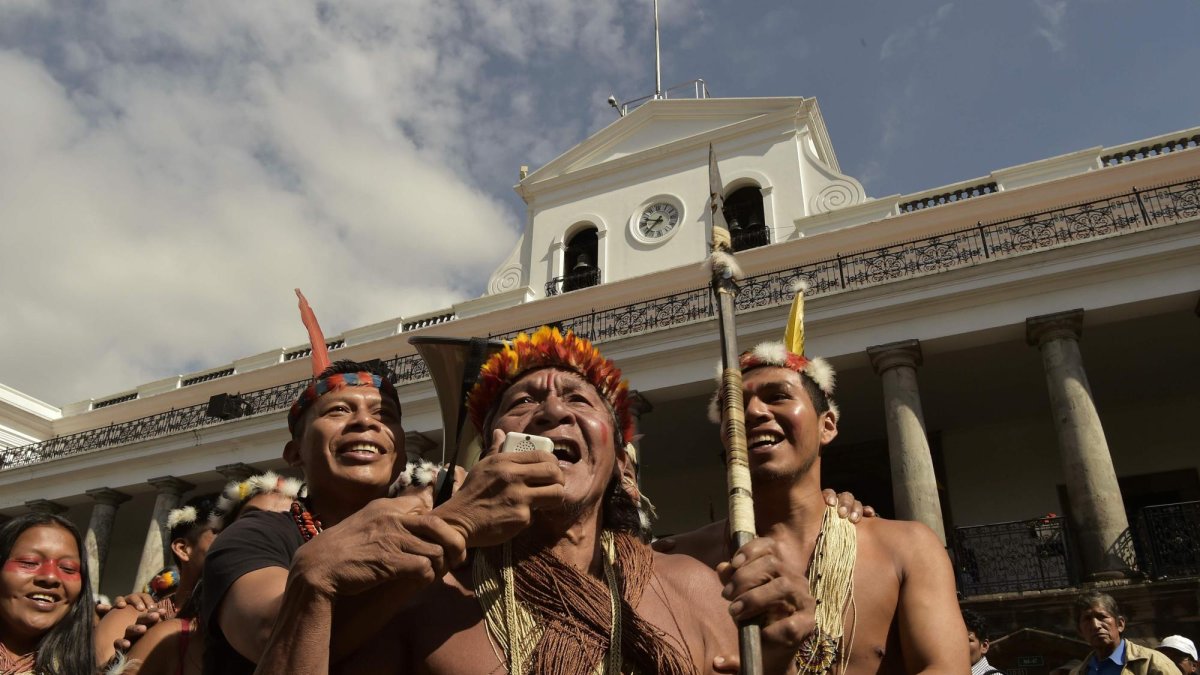 Unos 30 indígenas waorani se manifestaron pacíficamente este martes —25 de junio de 2019— frente a la sede del gobierno de Ecuador para defender un fallo de primera instancia que impide el ingreso de petroleras a zonas habitadas por esa etnia amazónica
