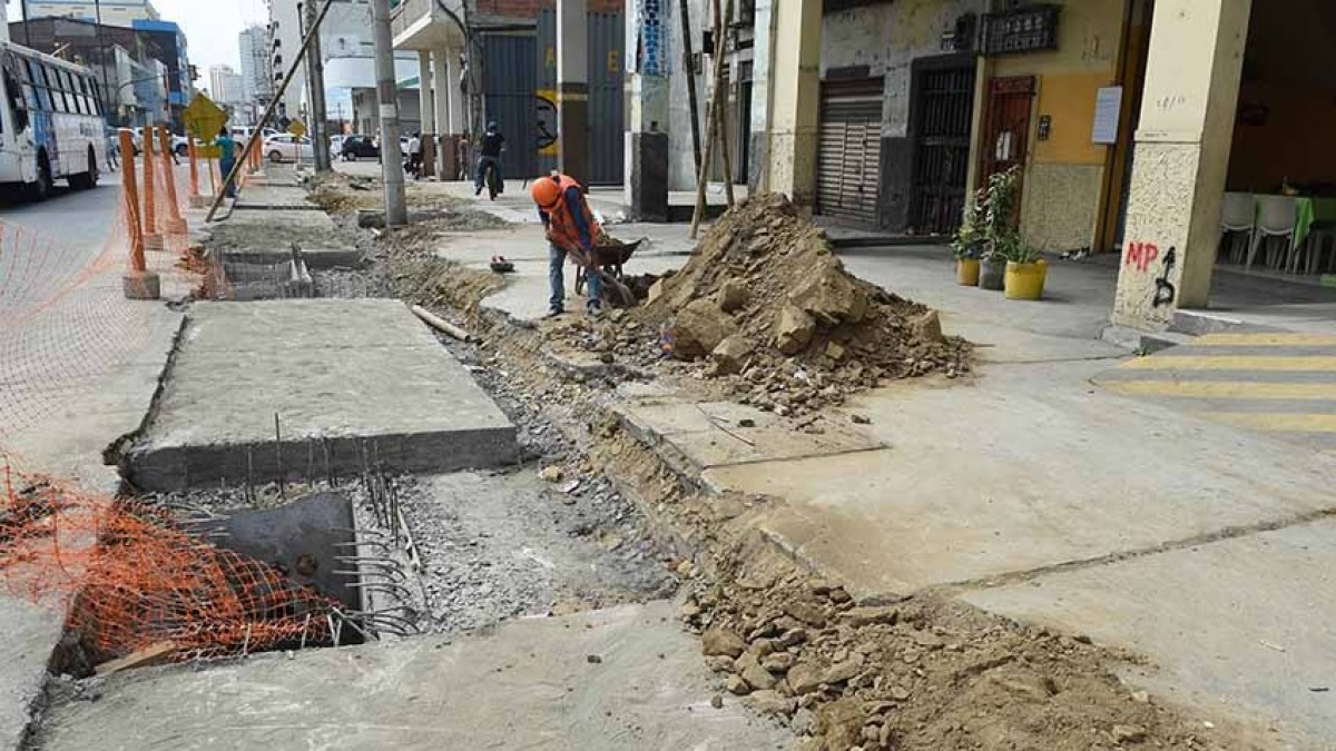 Después de tres meses de estar suspendidos los trabajos de regeneración urbana en la calle Junín, en el centro de Guayaquil, la tarde de este martes 10 de septiembre, una cuadrilla de obreros retomaron las tareas en el tramo que va desde la calle Lorenzo de Garaycoa hasta Avenida del Ejército.