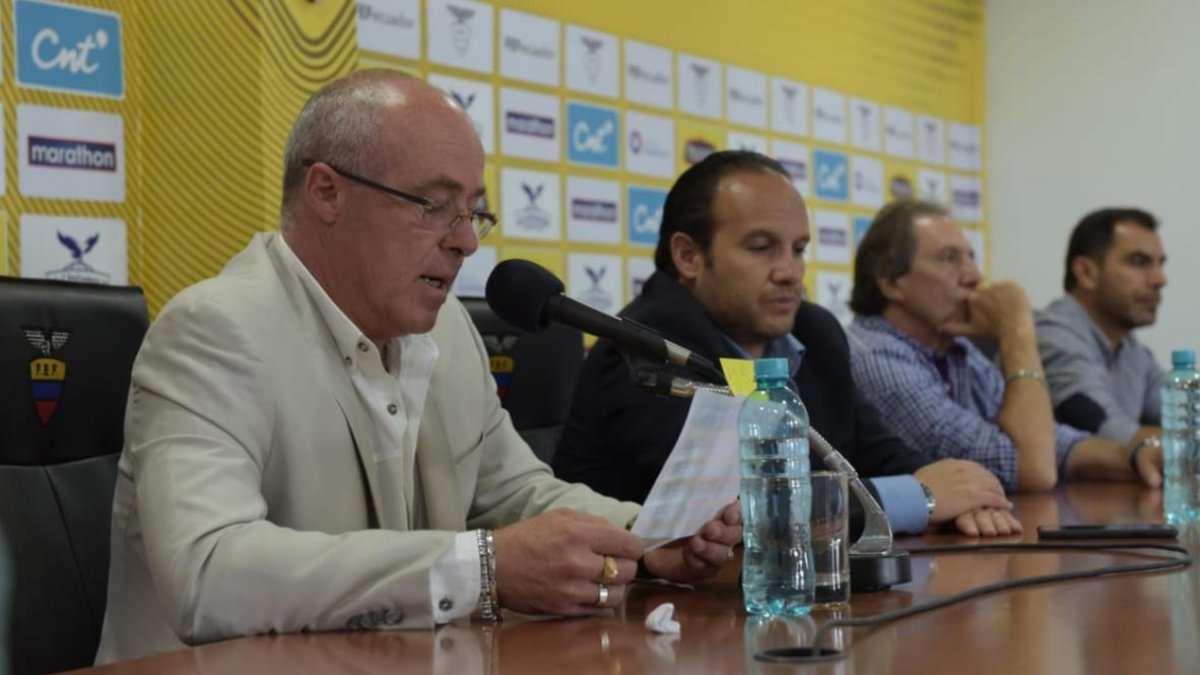 Jorge Célico y Francisco Egas durante la rueda de prensa de los 27 convocados a la selección nacional de fútbol. Vía: Karina Defas. pic.twitter.com/rnVi3QwZK0