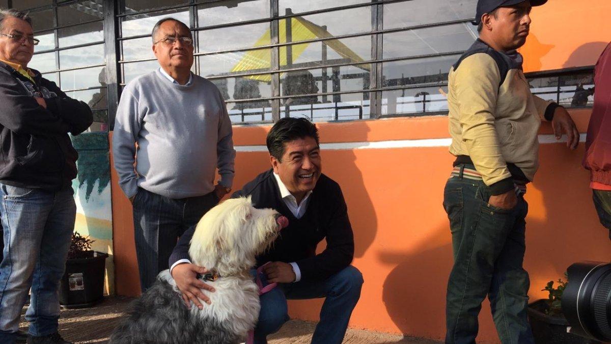 Yunda llegó acompañado de simpatizantes, familiares y su mascota, el perro Zeus. Según dijo a Diario Expreso, confía en los resultados y estará pendiente de los datos del Consejo Nacional Electoral (CNE) desde su casa.