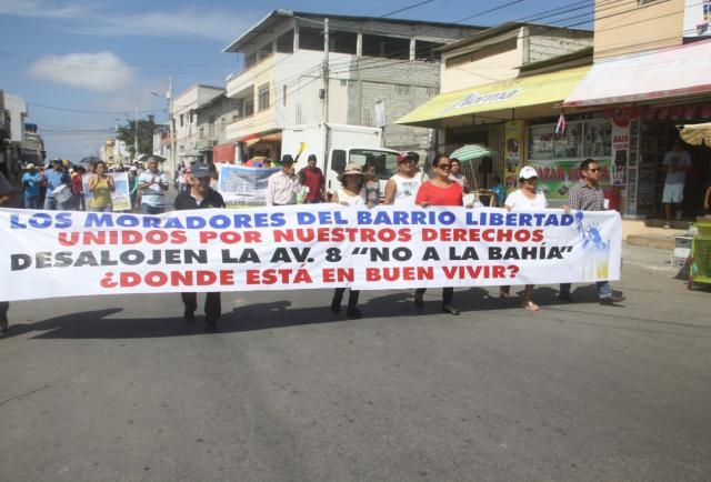 Por otro lado, los moradores del barrio La Libertad empezaron con una marcha y luego cerraron, por alrededor de 2 horas (09:00 a 11:00), la calle Guayaquil, una de las arterias comerciales más importante de la ciudad. La medida fue para que el municipio ordene el desalojo de los comerciantes informales que se encuentran asentados en la avenida octava de este sector desde hace 7 años.