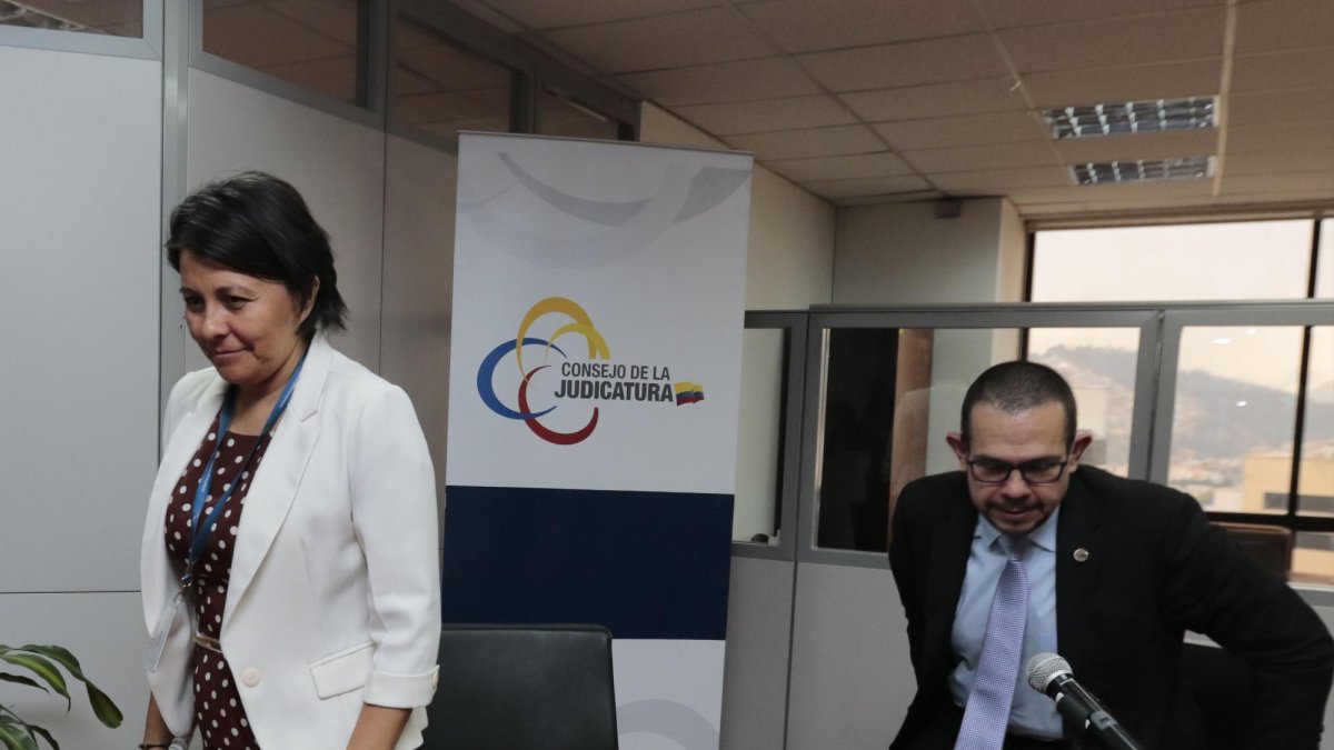 Los vocales del CJ Angélica Porras y Juan Pablo Albán dieron ayer una rueda de prensa para poner en perspectiva la tensa situación que se vive dentro del organismo. Lo hicieron desde el vestíbulo de sus oficinas y no en el auditorio en el que normalmente se desarrollan estos actos de la Judicatura, “porque las declaraciones no son a nombre del Consejo”, aclararon los funcionarios.