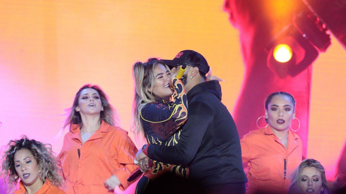 Karol G y Anuel AA pusieron a bailar al publico bajo la lluvia