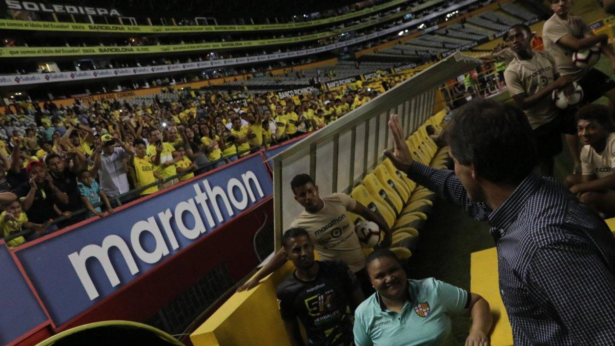 “Muchas gracias... profe Almada muchas gracias... que mañana volverás...”. El estribillo que los integrantes de la barra Sur Oscura le dedicaron al entrenador uruguayo marcó el adiós de Barcelona, equipo que anoche goleó 6-2 a Deportivo Cuenca, en un partido que se convirtió en un torrente de emociones.