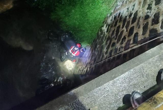Al arribar al lugar, los bomberos encontraron a una mujer de aproximadamente 27 años, quien presentaba politraumatismos moderados en la pelvis y columna vertebral. Ante la complejidad del terreno, el personal especializado empleó técnicas de rescate con cuerdas para realizar el descenso y posterior ascenso controlado desde el interior del cauce.