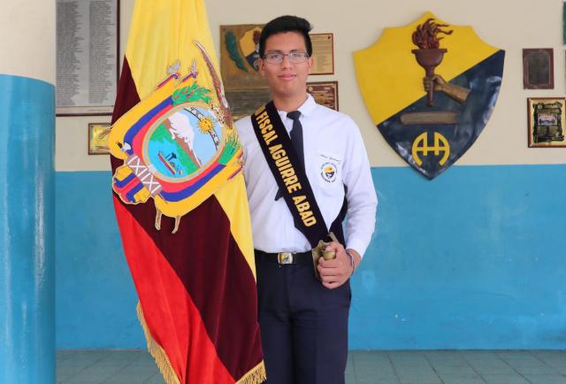 Lo que era un rumor en los primeros días de mayo se confirmó al mes siguiente, durante uno de los lunes cívicos que realiza el colegio. Anders Giusephe Cárdenas Vanoni, de 17 años, había sido designado abanderado de la Unidad Educativa Fiscal Aguirre Abad, tras alcanzar un promedio de 9,84 durante los últimos cinco años de vida estudiantil.