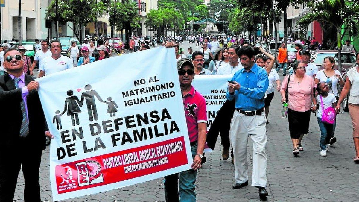 Eran aproximadamente 100 niños y adolescentes, todos con el uniforme del colegio donde estudian y con pancartas en las manos. Ellos asistieron el pasado sábado a la denominada ‘Marcha por la familia’, que organizaron diversos colectivos en contra de la sentencia que dio paso al matrimonio igualitario en el país.