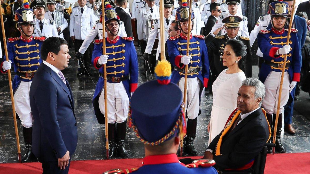 Moreno reduce el boato a lo mínimo indispensable: calle de honor de granaderos, alfombra roja, bandas militares, una sinfónica juvenil en el salón. Pero no sacrifica la seguridad, que en esta ocasión involucró a un millar de efectivos y contempló un complicado operativo para la entrada. Con el fin de compaginar seguridad y protocolo, invitados y protagonistas de la ceremonia se sometieron a un revelador orden de ingreso según el cual los de menor importancia llegaron primero y, en consecuencia, esperaron más. A las nueve, funcionarios y amigos; a las diez, ministros; cerca de las diez y media, todos juntos, los miembros del CAL; a las 10:40, recibida con honores, la ministra del Interior, María Paula Romo; a las 10:50, César Litardo; a las 10:55, el vicepresidente Otto Sonnenholzner. Y después de él, inmediatamente antes del presidente (¿no es esto un categórico mensaje?), la mesa chica de Carondelet: Santiago Cuesta, Andrés Michelena y Juan Sebastián Roldán. Cuesta se entretuvo estrechando manos de ministros. Romo le retribuyó el saludo con una sonrisa de compromiso y la mirada fija en la distancia, por encima de su hombro, con la misma cortante cortesía con que Ana Karenina recibiría a un pretendiente indeseable.