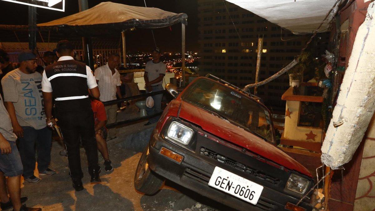 El pilar de una casa esquinera en el Cerro Santa Ana quedó destruido por el choque de un carro. Pero eso es el mal menor. Además, tres personas resultaron heridas por el impacto.