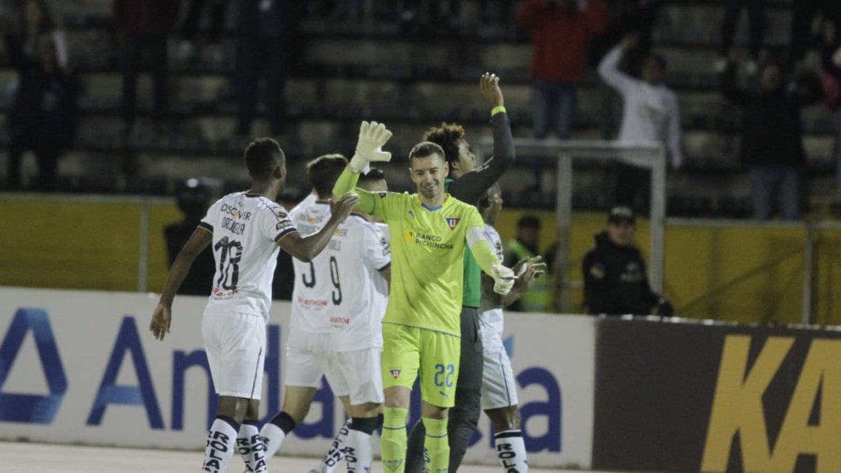 Gabbarini salvó una vez más a Liga y rechazó el remate rasante del atacante Walter Chalá, a los 21 minutos.