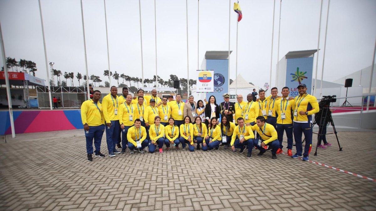 Los atletas de las disciplinas de levantamiento de pesas, pentatlón moderno y bolos, quienes ya se encuentran en la Villa, participaron en el acto, el cual se desarrolló en la Plaza de las Banderas, en la zona internacional. Junto al Team Ecuador también estuvieron las delegaciones del anfitrión Perú y de Trinidad y Tobago.