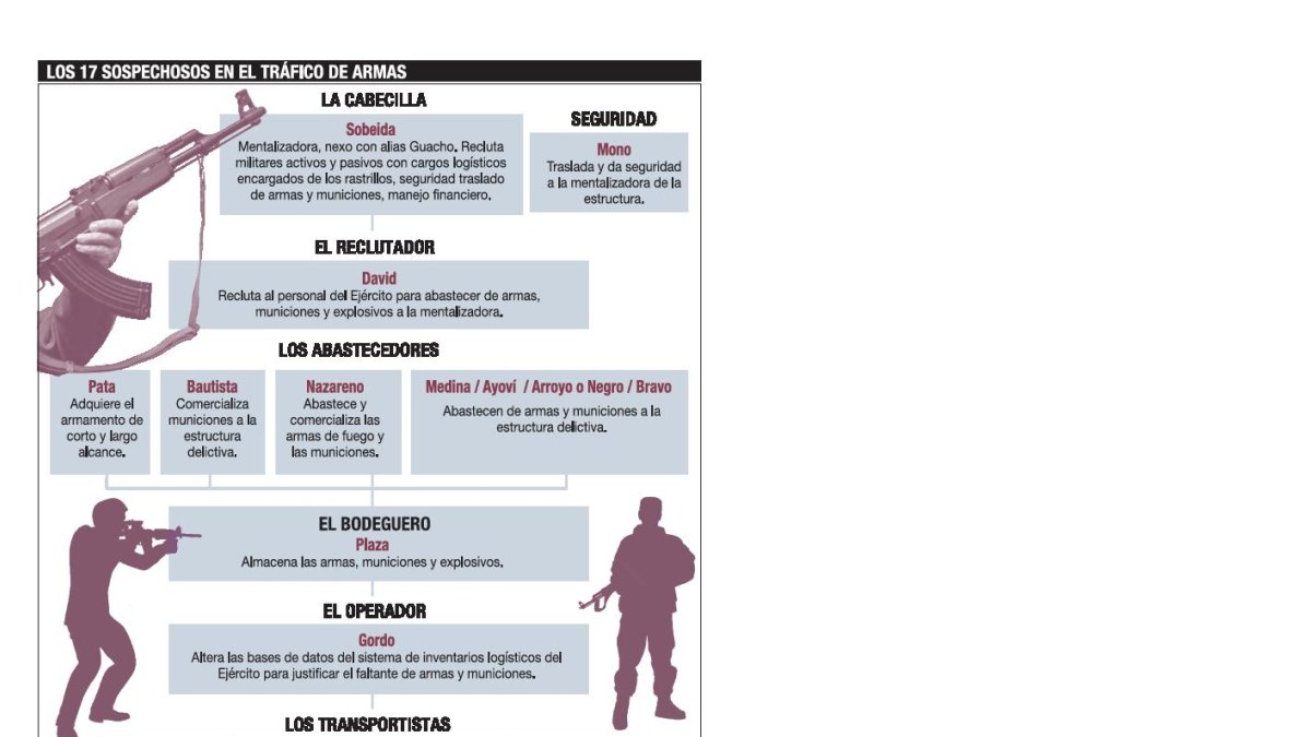 Esta semana, la Fiscalía siguió con la recepción de las versiones de oficiales militares en el caso de presunto tráfico de armas en el que fueron judicializados siete miembros de tropa de distintos repartos. Ellos son sospechosos de integrar una estructura de provisión de municiones para alias Guacho.