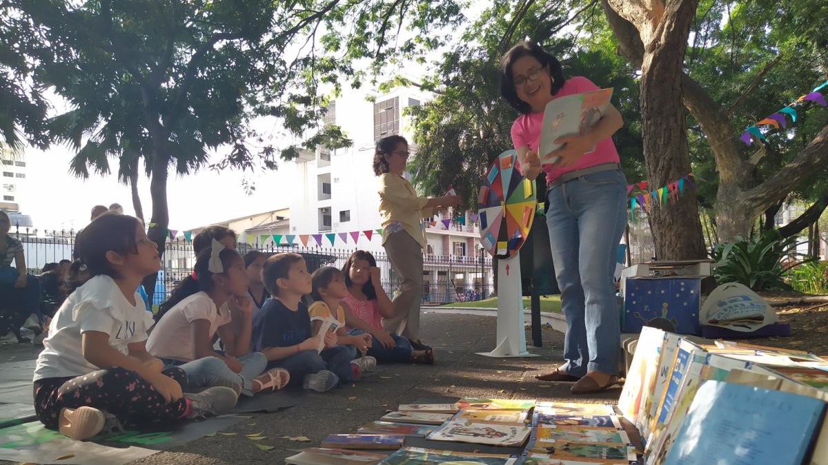 La tarea no es sencilla. A las 16:00 de un jueves, bajo la sombra que da un árbol en esa tarde soleada, los miembros de la Casa de la Cultura núcleo del Guayas acomodan en el piso y sobre una pequeña mesa, unos 50 cuentos infantiles y una veintena de obras de la literatura ecuatoriana y universal.