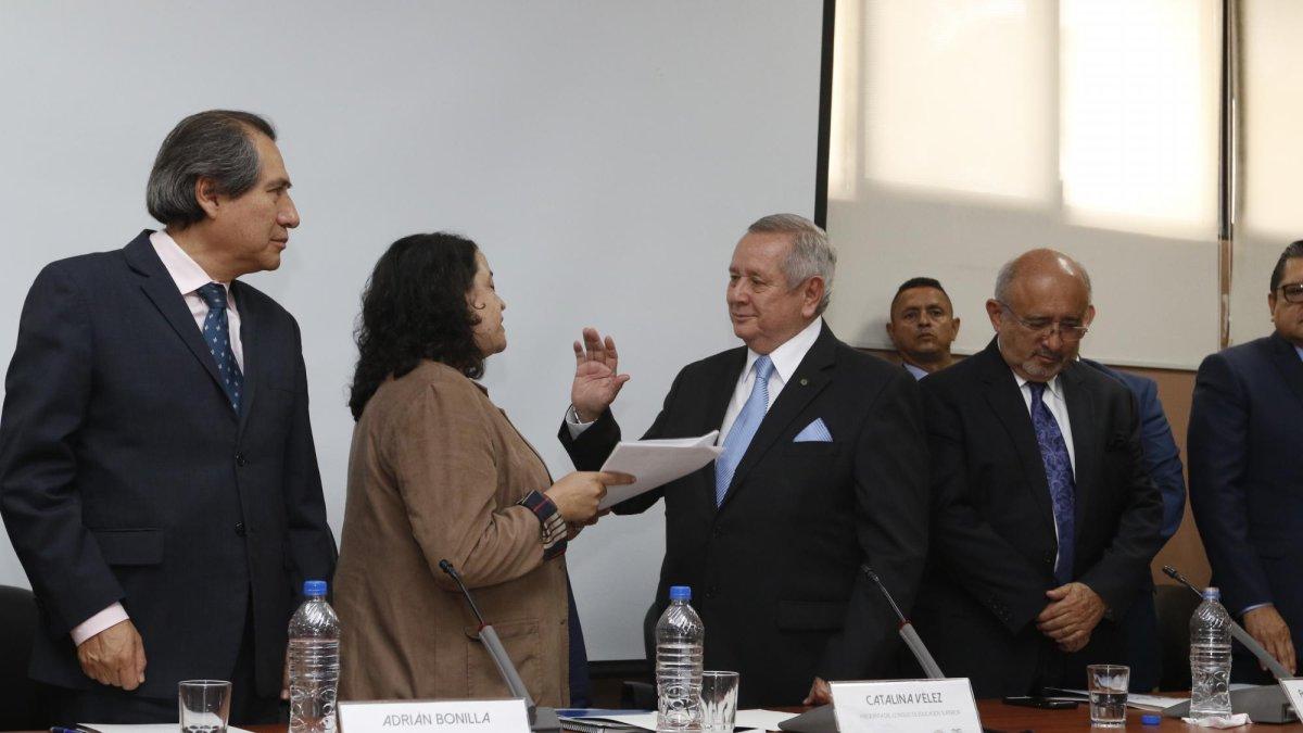 El acto de posesión de los interventores se desarrolló en la sala del Consejo Universitario del alma mater y estuvo a cargo de la presidenta del CES, Catalina Vélez, y del secretario de la Senescyt, Adrián Bonilla.