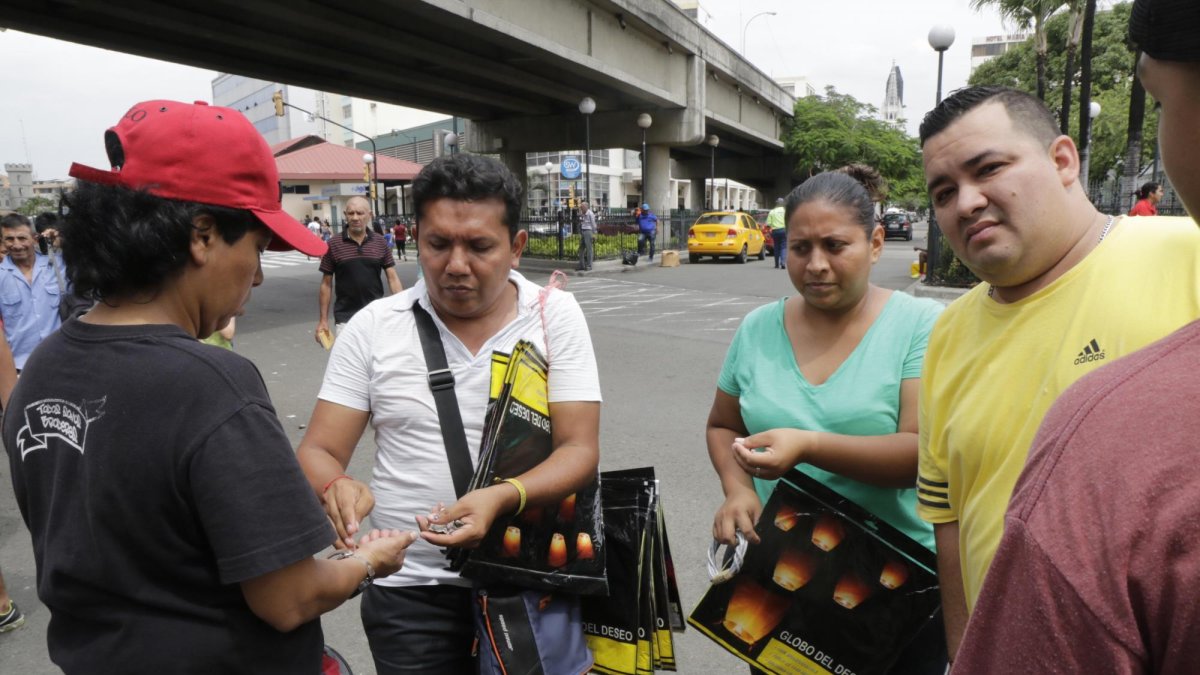 “Usted abre el globo, lo enciende; escribe sus deseos en un papel y los ubica dentro de él; lo lanza en la noche al cielo para que sus peticiones sean concedidas”. Así lo explica un comerciante informal, quien vende estos productos a $ 3 en una esquina entre las calles Piedrahíta y Esmeraldas de Guayaquil.