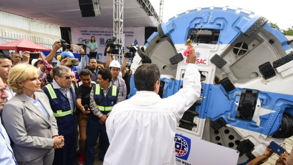 La alcaldesa de Guayaquil, Cynthia Viteri, realizó la mañana de este lunes 22, el bautizo de la microtuneladora ‘Juliana’, ubicada en la avenida Raúl Clemente Huerta, en el sur de la ciudad. Allí se tiene previsto que el equipo transporte, de forma segura, las aguas residuales desde la estación de bombeo La Pradera hasta la planta de tratamiento de Aguas Residuales Las Esclusas, para su tratamiento y disposición final.