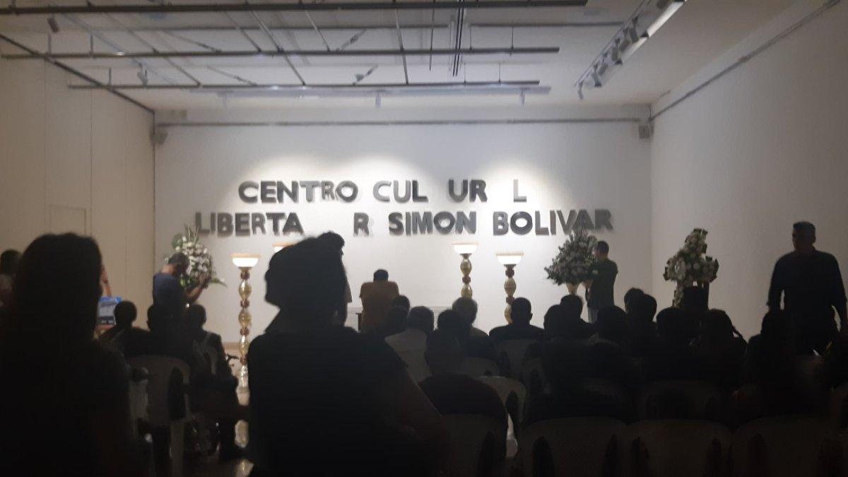 El sujeto del ‘entierro’ fueron las letras con el nombre antiguo de la entidad, renombrada Centro Cultural Simón Bolívar durante el último gobierno. Estas, colgadas en la sala, se expusieron a manera de velorio, con cetros, flores y las lúgubres melodías de la banda del la Academia Naval Altamar.
