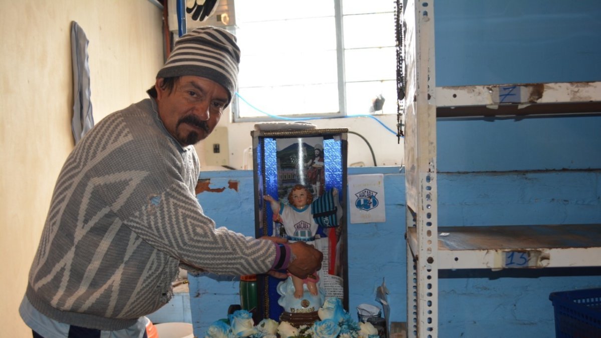 En la entrada del cuarto de la utilería está en su nicho la imagen del Divino Niño, que es el patrono del Macará. Está vestido con la camiseta del equipo y decorado con rosas blancas y celestes. Julio César Escalante, quien trabaja como utilero hace más de 10 años en el club, es quien se encarga de adornarlo para que siempre los bendiga.
