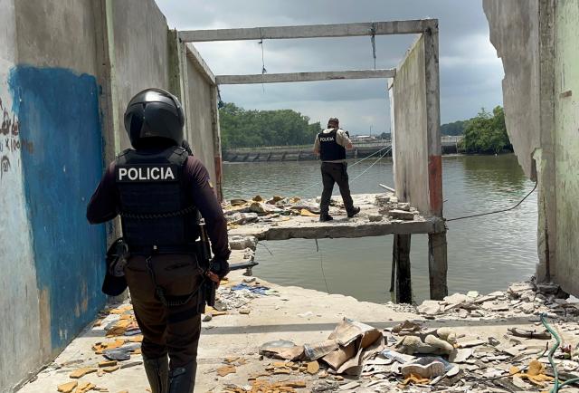 Las cicatrices de la violencia son notorias. El oficial Calle acompañó al equipo periodístico de Mongabay Latam por las calles y casas destruidas por la guerra entre bandas narcodelictivas. Sorteando un gran hueco en el piso, cerca del callejón de Los Sandros (denominado así por una banda local que responde a otra que tiene alcance nacional), se accede a un borde de lo que queda en pie de una casa sobre el agua del estero Huayla, un ramal estratégico para sacar la droga hacia el mar.