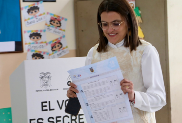 La vicepresidenta de Ecuador, ejerció su voto en Quito e instó a la ciudadanía a involucrarse en la consulta popular 2025
