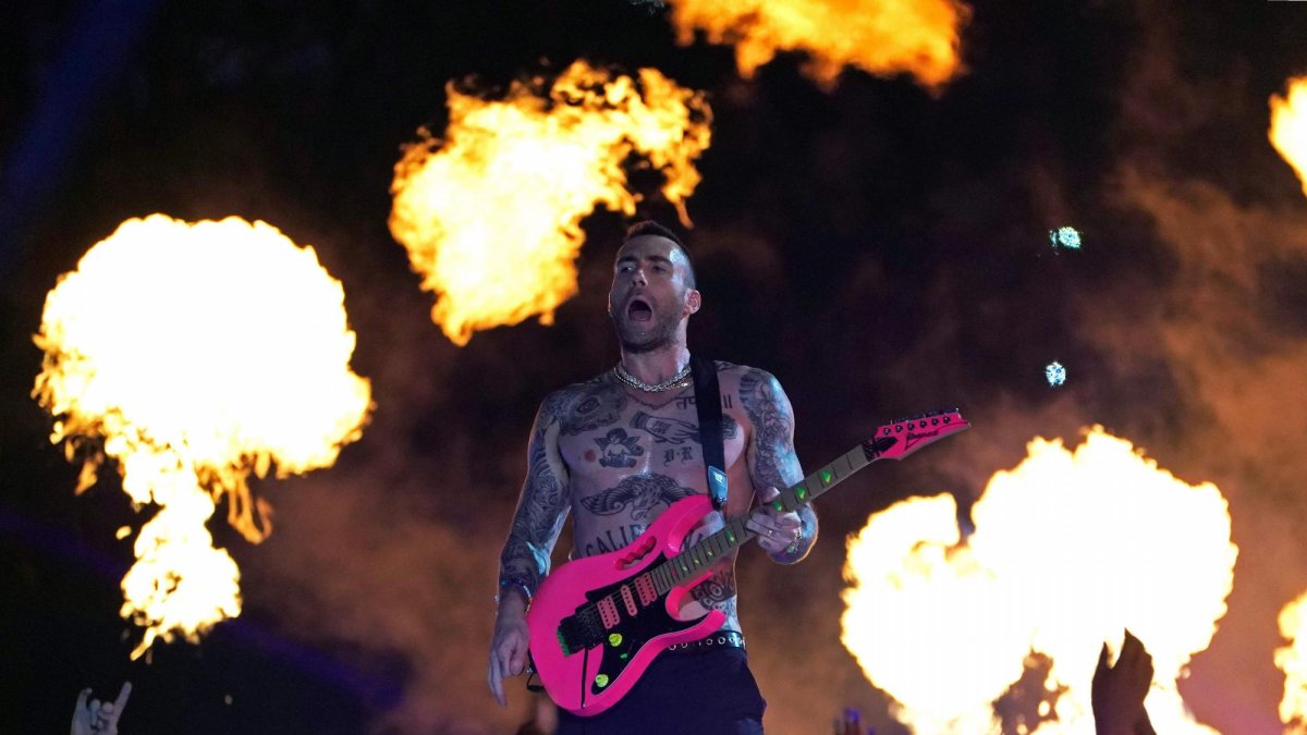 Maroon 5 desató este domingo una lluvia de fuego y cohetes en una actuación en la gran final de la liga estadounidense de fútbol americano, el Super Bowl.