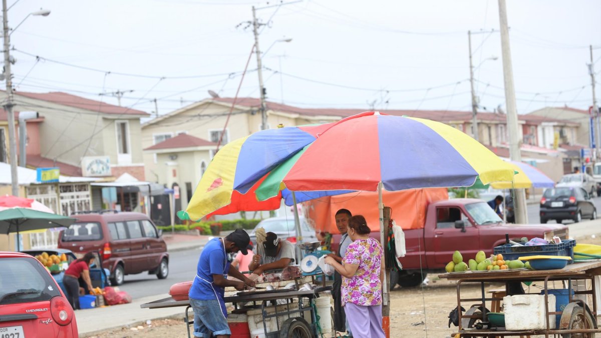 La lluvia mañanera del martes había ahuyentado a la mayoría de vendedores, menos a Gema Andrade, a quien el clima favorecía. Las frutas y legumbres que expende en la calle Costanera, la primera entrada al programa habitacional Mucho Lote 2, se conservaban más frescas y frías.