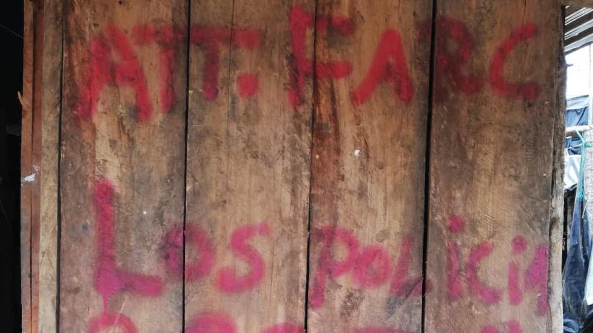 “Los policías que están aquí van a morir. Malditos. Att. FARC”. Ese es uno de los mensajes de amenaza que han aparecido en la zona minera ilegal de Buenos Aires, tomada ahora por militares y policías con el fin de desalojar el sitio de mineros que venían cumpliendo la actividad de manera ilícita.