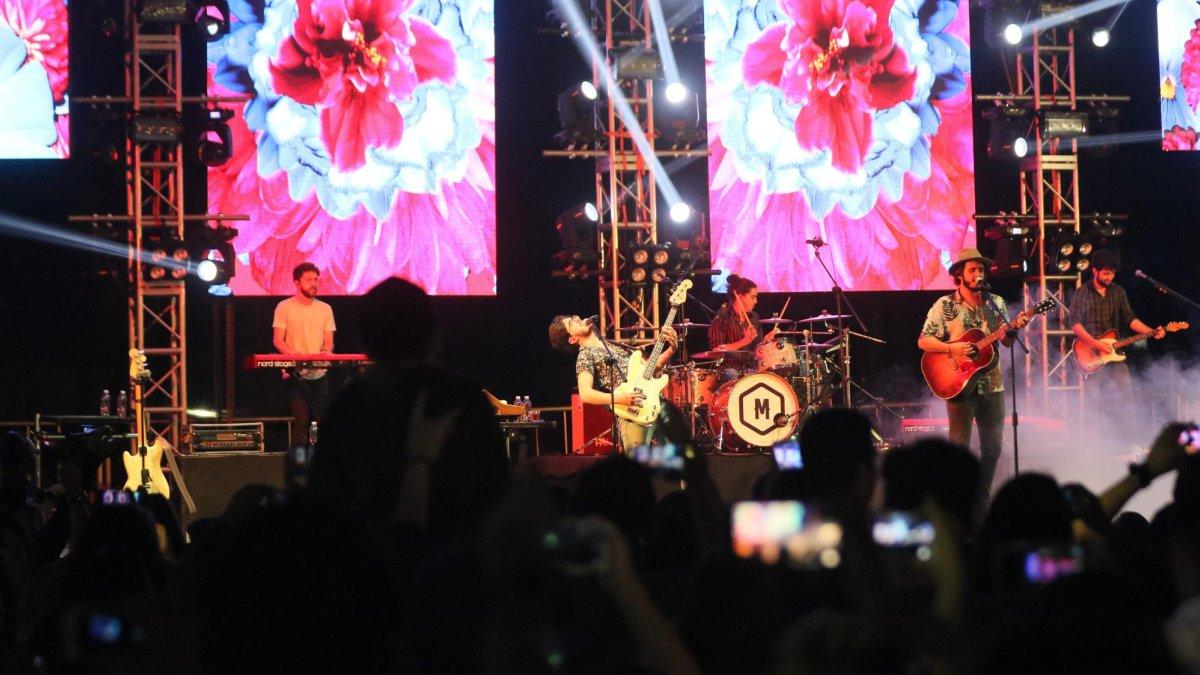 Eran las 21:08 y comenzaron a salir primero los músicos secundarios. Un grito conjunto de las fanáticas anunció que los dos Juan Pablo y Simón y Martín ya estaban en escena. Cada uno con su instrumento predilecto, emocionaron a la audiencia con una previa de la canción Maldita costumbre, que después de unos cuantos minutos la empezaron a cantar. Le siguió Amor con hielo y Cuando nadie me ve. A las 21:20 Juan Pablo Isaza, uno de los vocalistas, saludó al público y agradeció por recibirlos con tanto amor tan seguido.