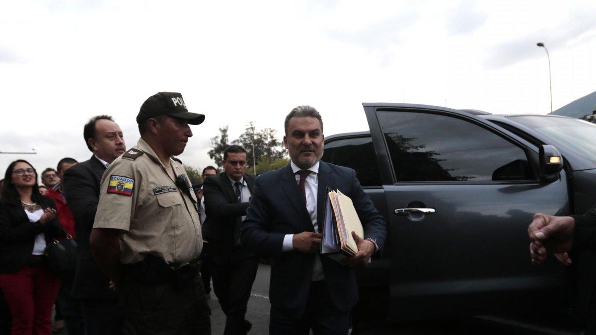 Hernán Ulloa, como abogado de Carlos Pólit, quien es la otra parte protagonista de la grabación filtrada, se presentó en la Fiscalía este 6 de marzo, para la extracción del audio, que no es otra cosa que su análisis técnico.