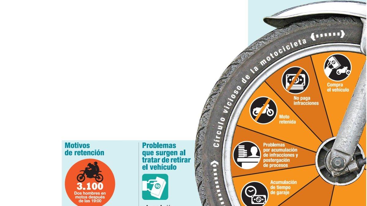 En los centros de retención vehicular hay más de 6.000 motocicletas; una cifra que representa la tercera parte del número de esos vehículos matriculados en 2017.