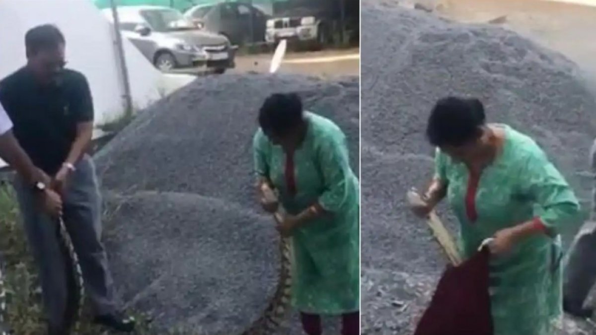 Una mujer capturó una pitón viva de 20 kg en la región india de Ernakulam. El suceso fue grabado en vídeo y difundido en redes sociales, donde se ha viralizado con más de 20.000 reproducciones en Twitter.