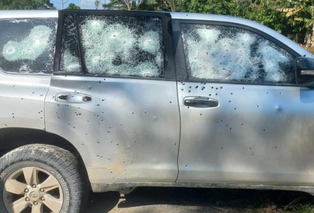 Imágenes compartidas en redes sociales muestran el vehículo con las ventanas reventadas y perforado por decenas de impactos de bala a pesar de que era blindado, según el equipo del político.