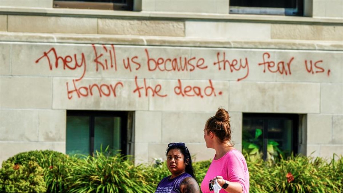 "Nos matan porque nos temen. Honoren a los muertos." lee un graffiti en el palacio de justicia de Kenosha, Wisconsin.