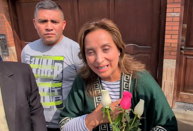 Los simpatizantes de Boluarte le entregaron unas rosas y clamaron por su "reelección" al considerar que "salvó al país del comunismo y de los 'caviares'", término usado en Perú para definir a la izquierda y la centroizquierda más apegada con el Estado de Derecho y el derecho internacional.