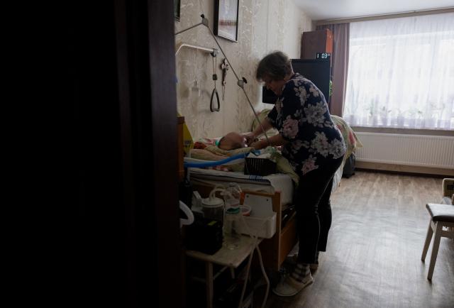 Olena Grigorenko ha salido poco de su apartamento en Cherníhiv en las últimas semanas. Cada vez que hay un apagón en la ciudad del norte de Ucrania, corre a la cama de su esposo para conectar las baterías del respirador artificial que lo mantiene con vida.