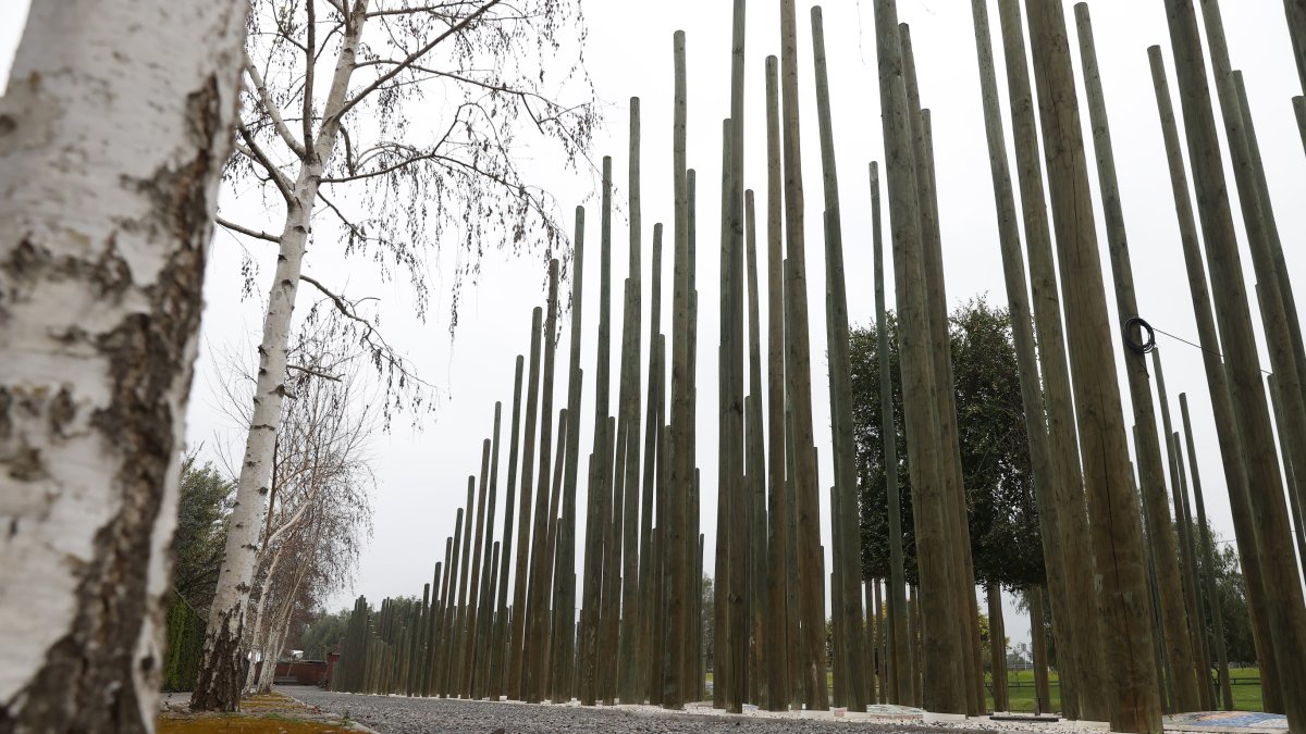 Personas caminando junto al "Paseo de la Memoria", lugar que busca homenajear y recordar a los 70 detenidos desaparecidos y ejecutados políticos de Paine.