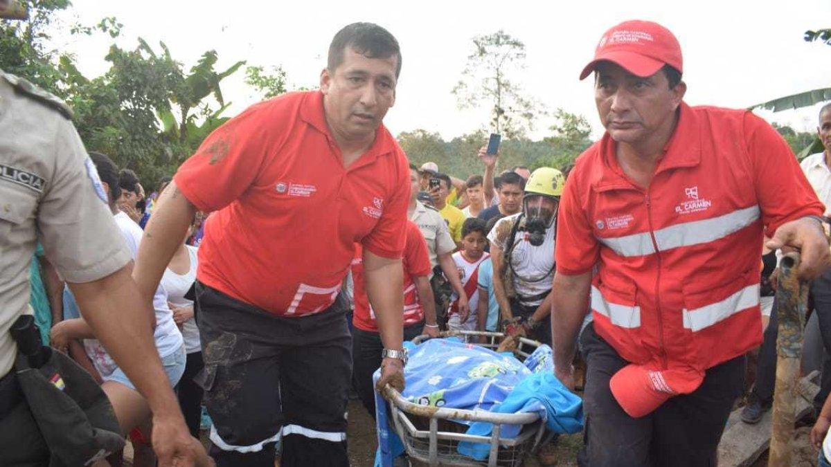 Puestos en la faena de sacar el cadáver de las entralas de la tierra, los bomberos de El Carmen y los Santo Domingo trabajaron incansablemente por más de dos horas en el rescate. Después de todo ese tiempo, lograron extraer el cuerpo de Wilter para que las autoridades respectivas hicieran su trabajo.