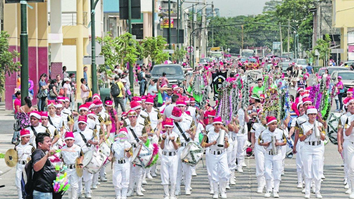 “Hoy (ayer) están aquí mis siete nietos, mis cinco hijas y sus esposos..., es como si fuera ya Navidad”, pensó, mientras fotografiaba a las alumnas del 28 de Mayo que se desplazaron por las 20 cuadras que integraron el recorrido en una falda de tul; y a los jóvenes de las unidades educativas Nueve de Octubre, Galo Plaza Lasso, Liceo Octubrino..., que caminaron tocando sus tambores, adornados todos con escarchas y copos de nieve de fómix.