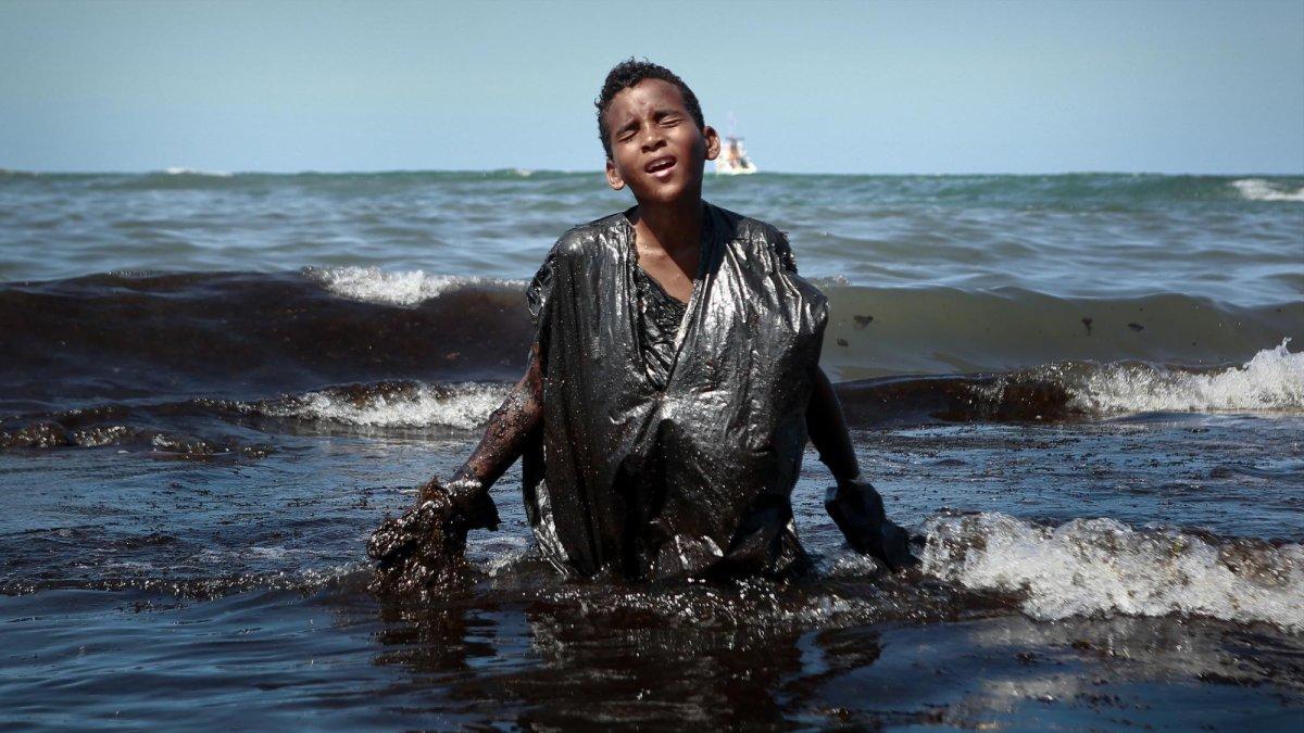 La imagen dio la vuelta al mundo: un niño sale del agua con los ojos cerrados y un gesto de impotencia, el cuerpo cubierto por una bolsa de plástico, embadurnado por el petróleo que desde hace casi dos meses se extiende por la costa nordeste de Brasil.