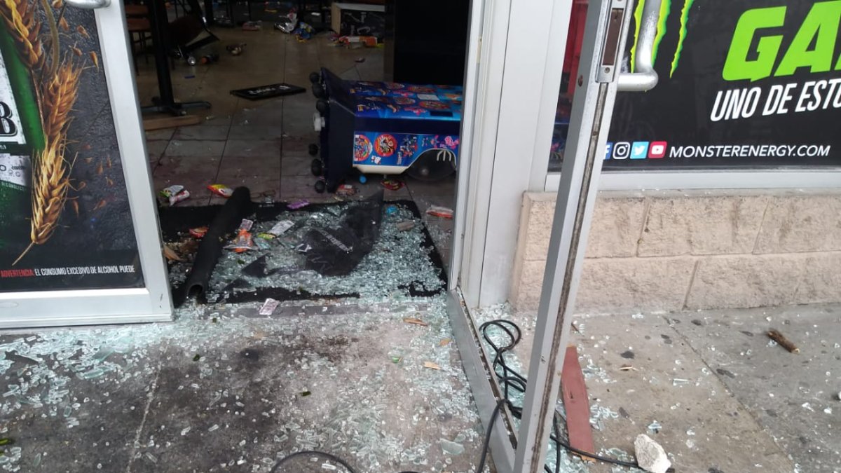 Vidrios rotos, estanterías vacías, puertas totalmente dañadas... El escenario se repetía al frente, y más allá, en otra gasolinera completamente saqueada. Pero fue El Recreo donde más se sintió el remezón.